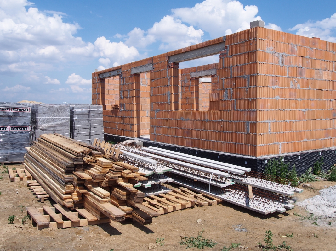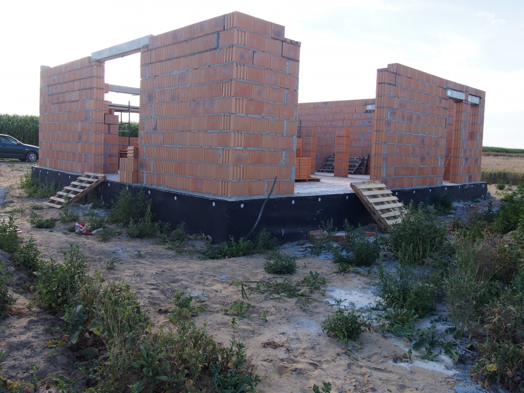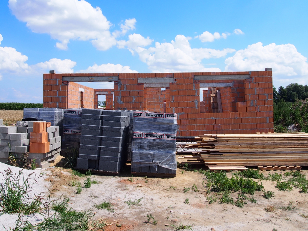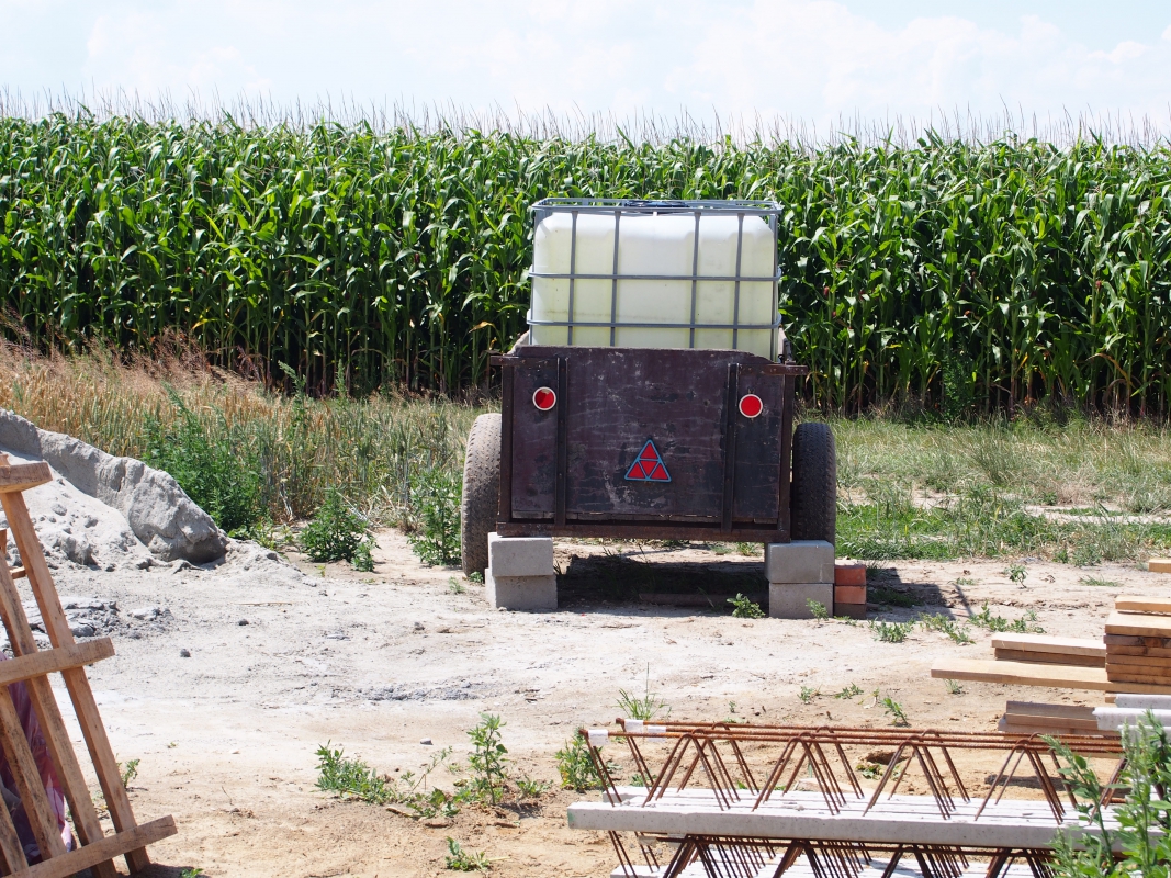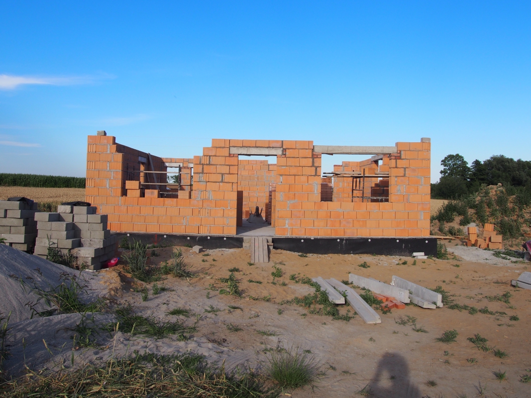 I tak o to po trzech miesiącach oczekiwania firma budowlana w końcu uraczyła nas swoją obecnością! :) Wszystko poszło im bardzo sprawnie i trzeba przyznać, że nieźle wstrzelili się z pogodą, bo już na drugi dzień po wylaniu betonu zaczął padać deszcz i pada do tej pory, dzięki czemu ominęło nas polewanie go wodą :) Po drugie teraz nie byłoby nawet możliwości dojazdu ciężkiego samochodu z betonem na budowę, bo jak możecie zauważyć na zdjęciach z każdej strony otaczają nas polne drogi.